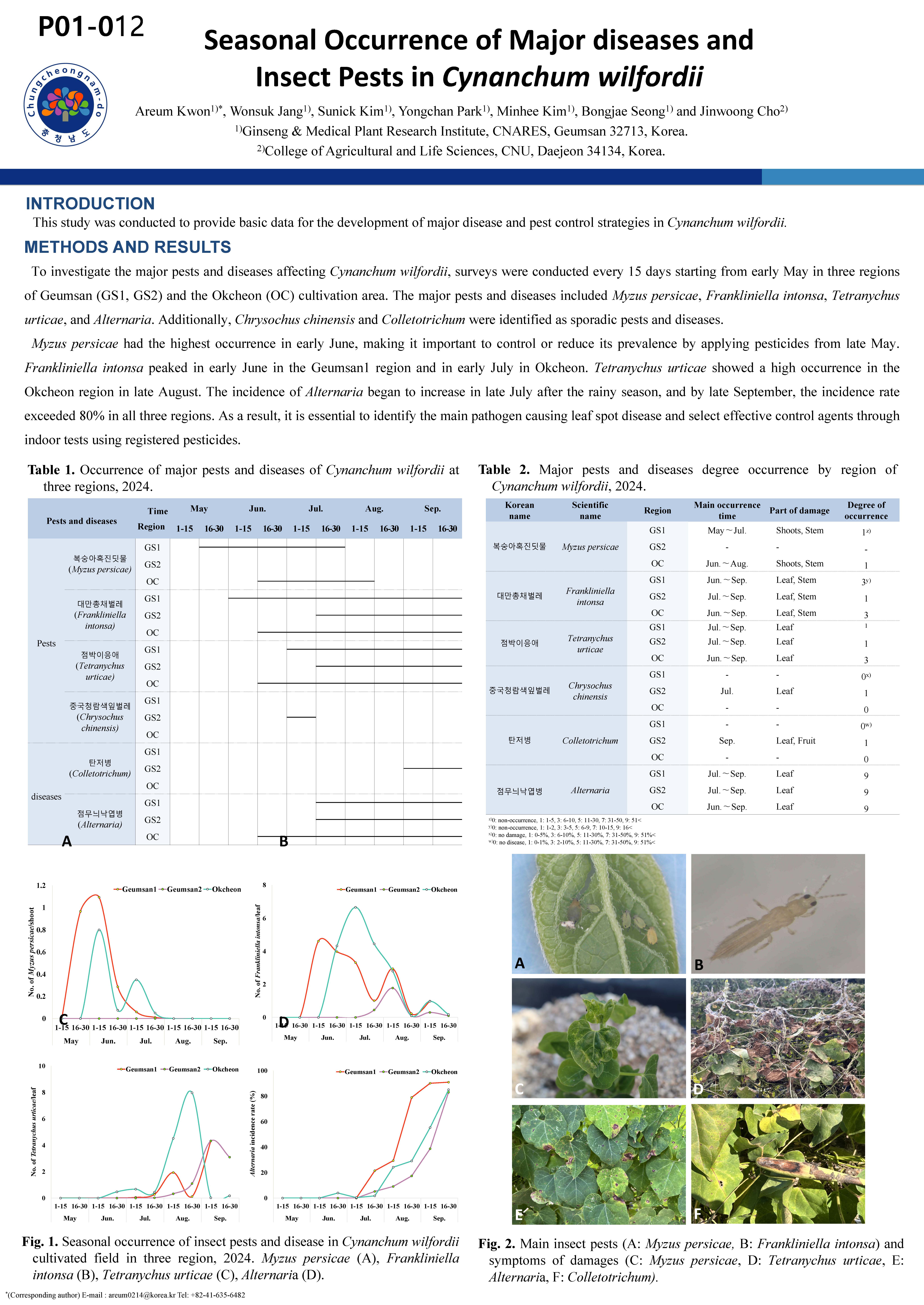 [P01-012] 백수오 재배지에 발생하는 병해충의 종류와 발생 양상