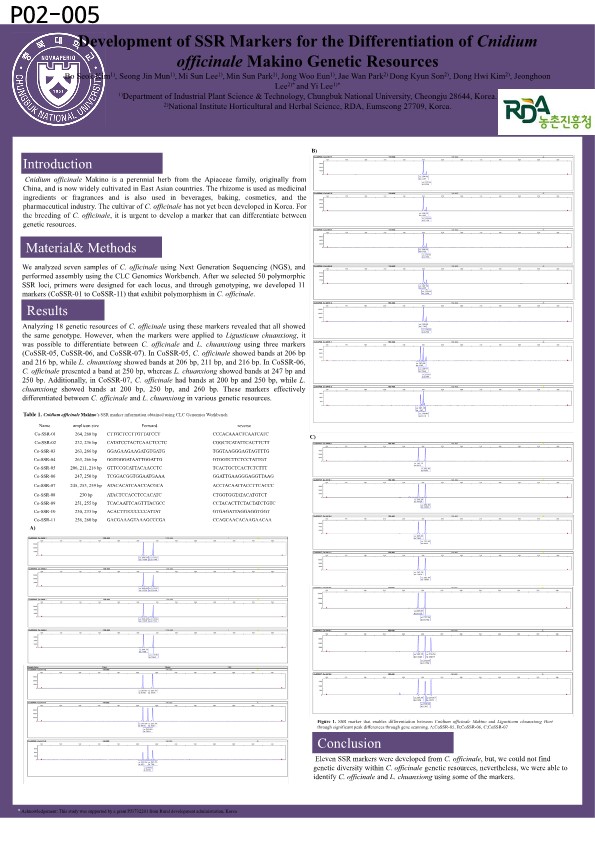 [P02-005] 일천궁(Cnidium officinale Makino) 유전자원의 식별을 위한 SSR 마커의 개발