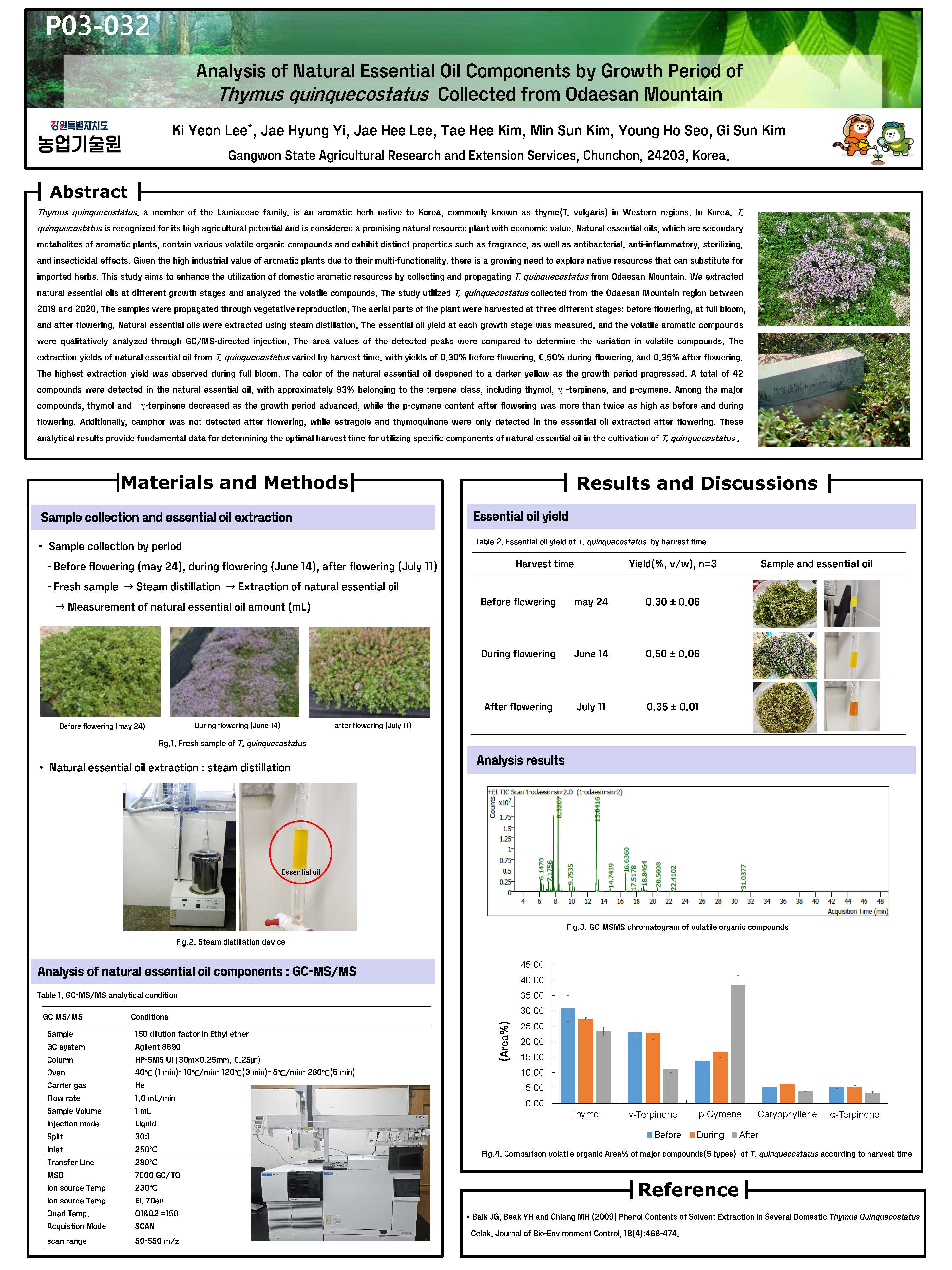 [P03-032] 오대산 수집 백리향의 생육시기별 천연정유 성분 분석