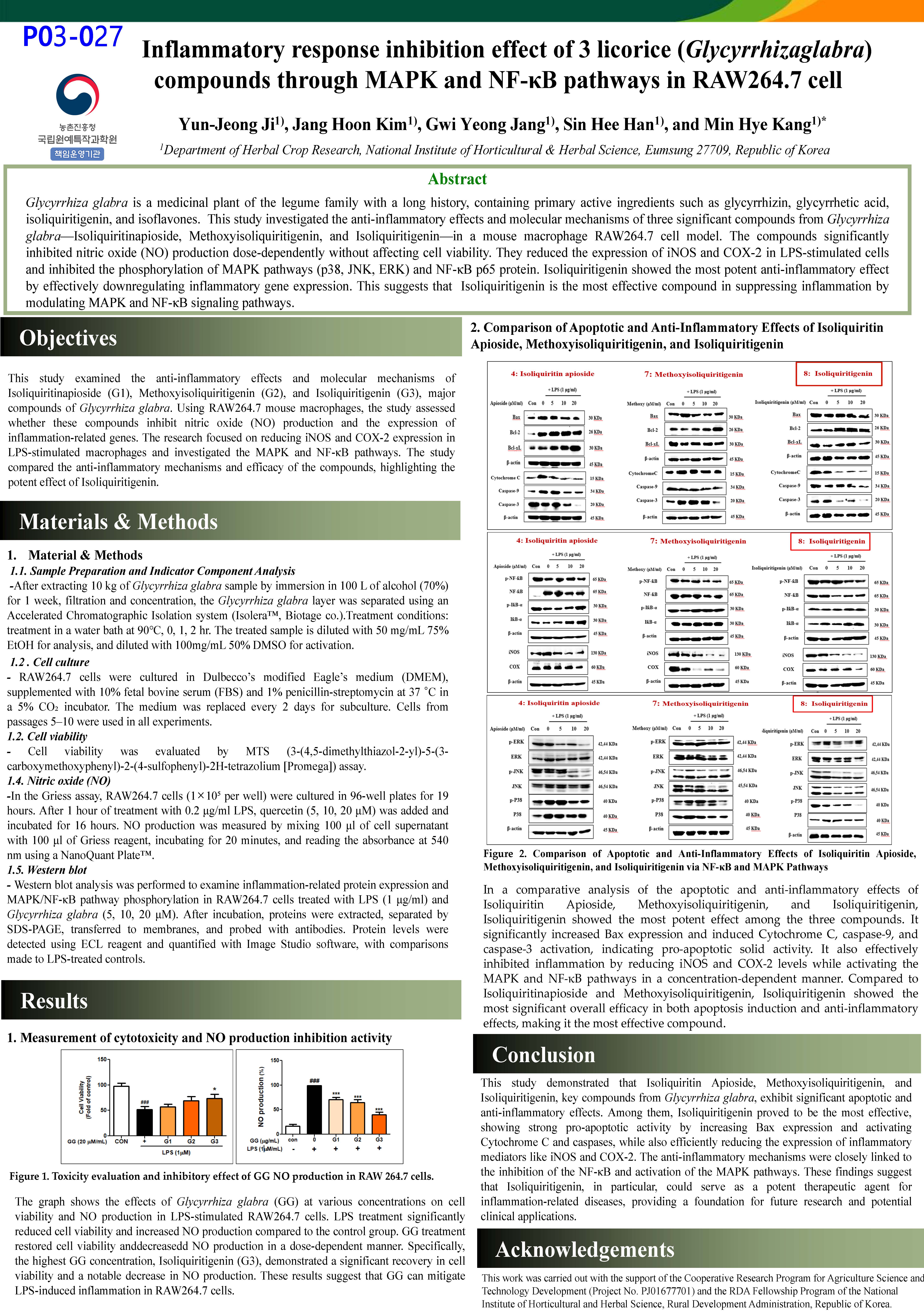 [P03-027] RAW264.7 세포에서 MAPK 및 NF-κB 경로를 통한 감초(Glycyrrhiza glabra) 화합물의 염증 반응 억제 효과