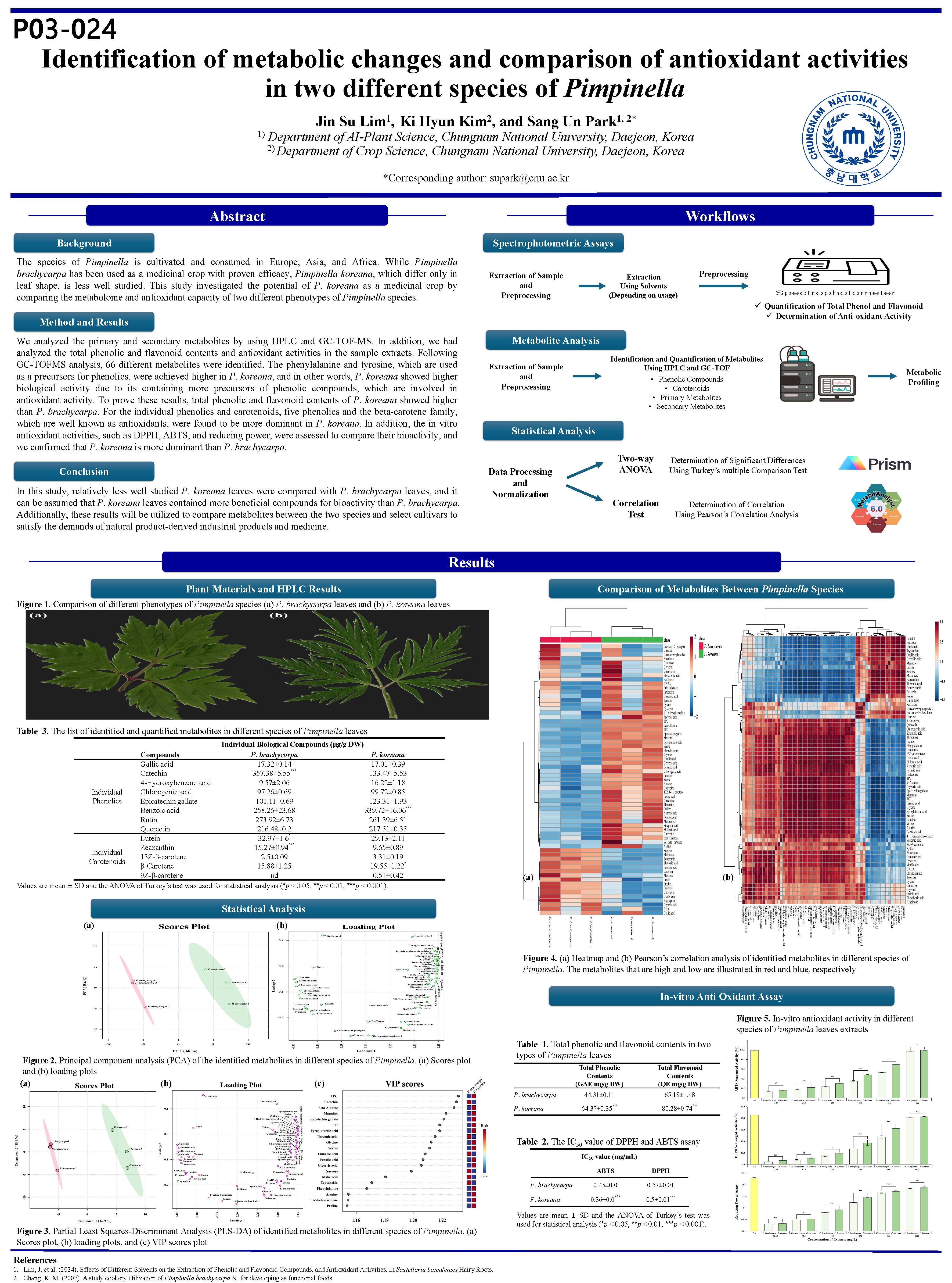 [P03-024] 표현형이 다른 참나물 품종 간의 대사체 변화 분석 및 항산화능 비교