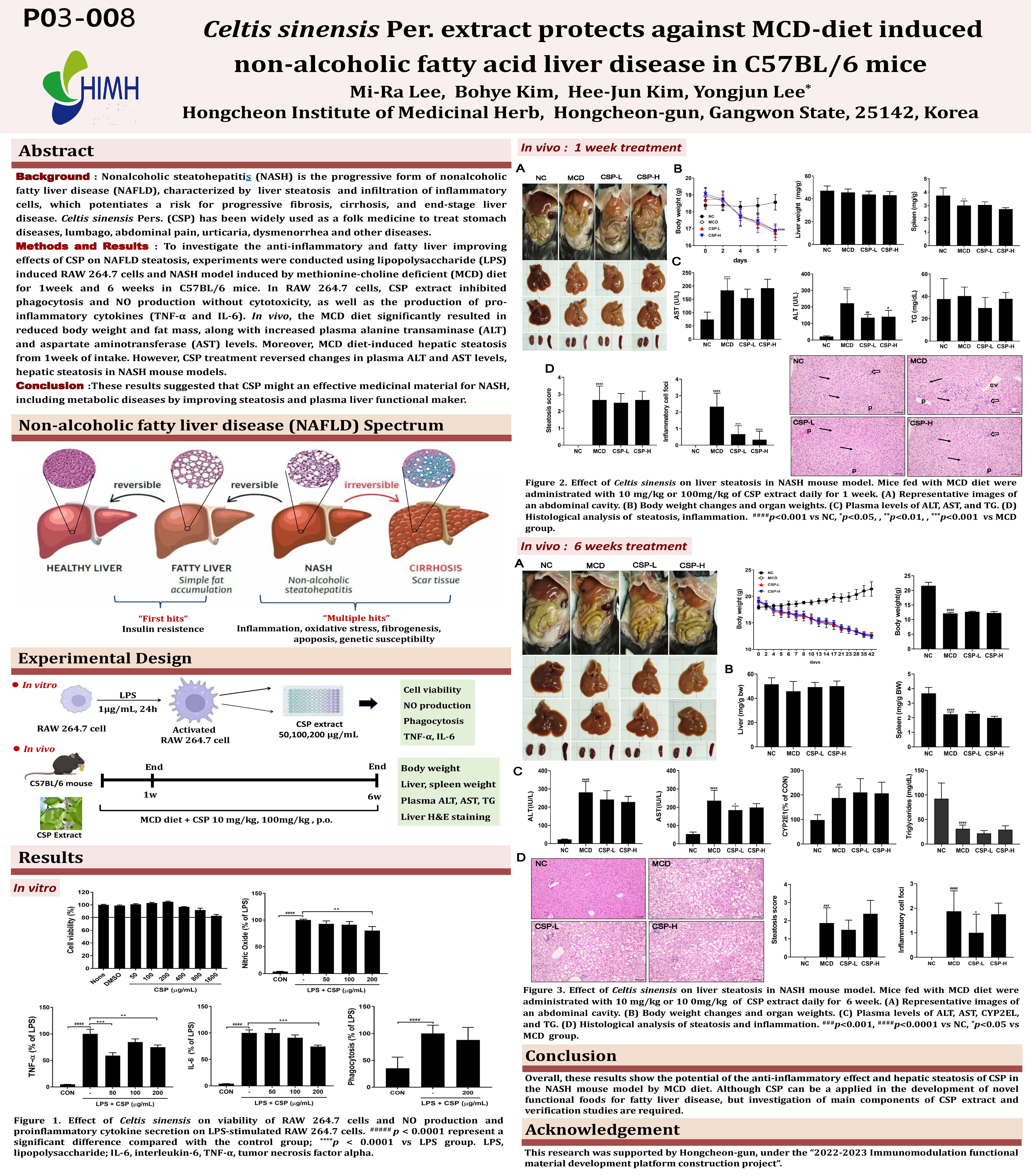 [P03-008] Methionine-choline deficient 식이로 유도한 비알콜성 지방간 마우스 모델에서 팽나무 추출물의 개선효과