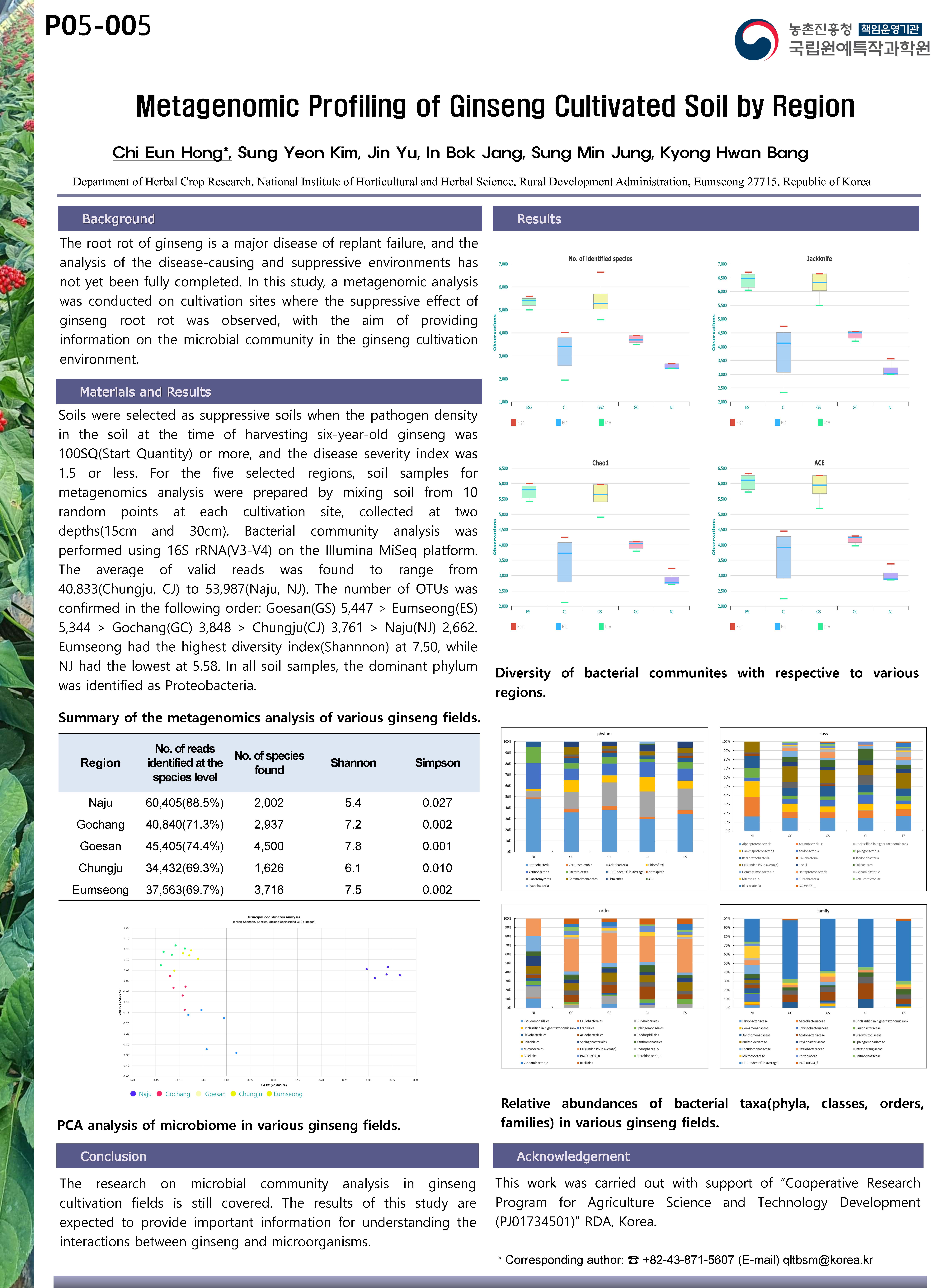 [P05-005] 지역별 인삼 재배지 토양의 메타게놈 분석